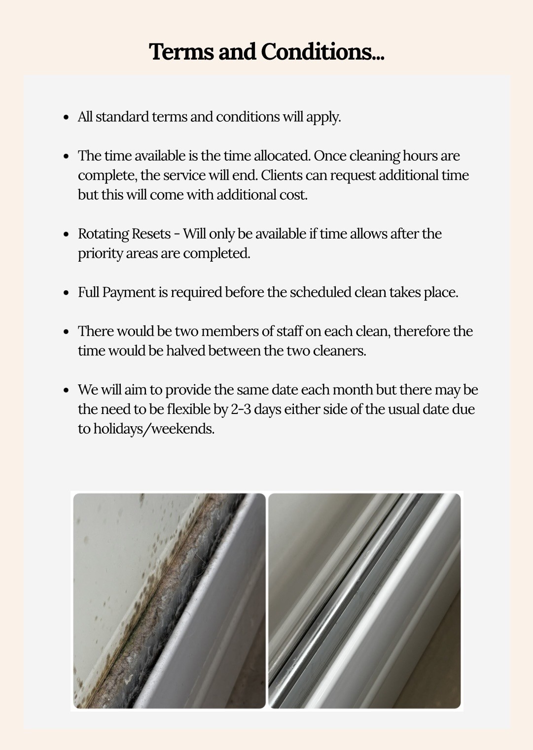 - Behind the scenes we work on before and after images which can be sent to you after your cleans.